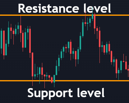 What is a resistance level in the chart. It's the same as a support level but at the top. If the price hits that, the price will fall again. So this is the level at the top of the range. Just like a support level, you can place a trade on it. The resistance is also an important level when trading. You can also use this to determine the entry, stop loss and take profit.