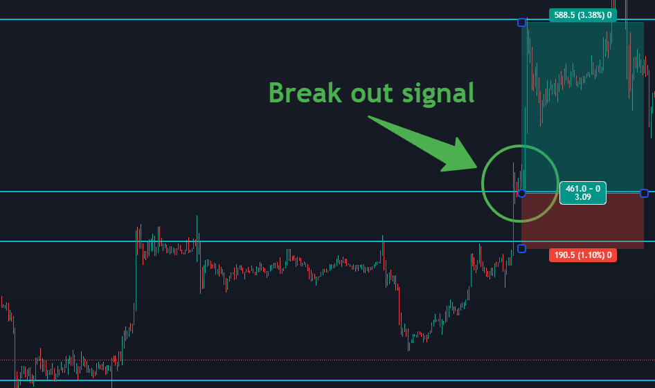This trade often occurs when the price action of the cryyto coin moves to another range. There are also good profits to be made here. A disadvantage is that finding this trade is more difficult for novice traders.